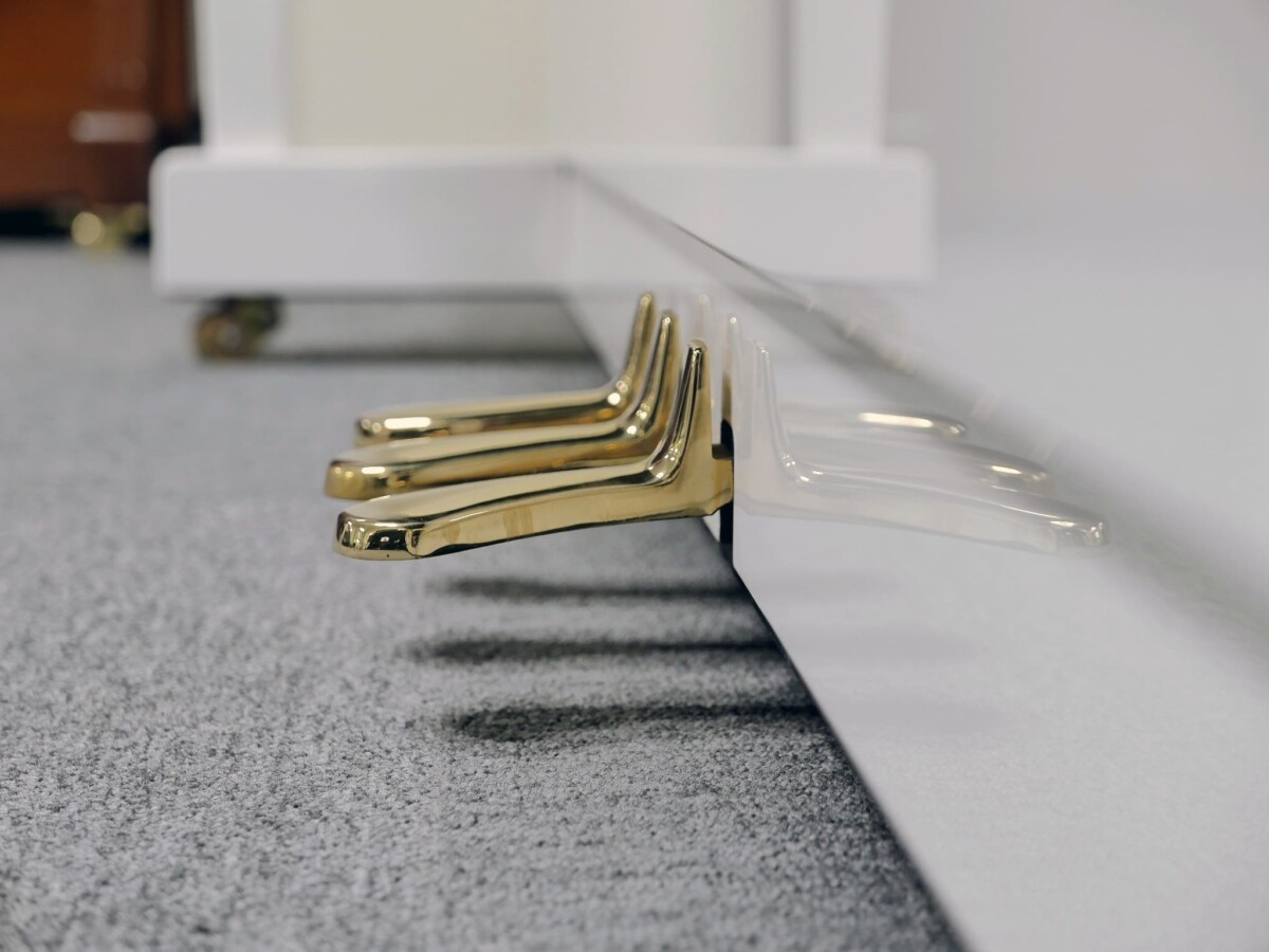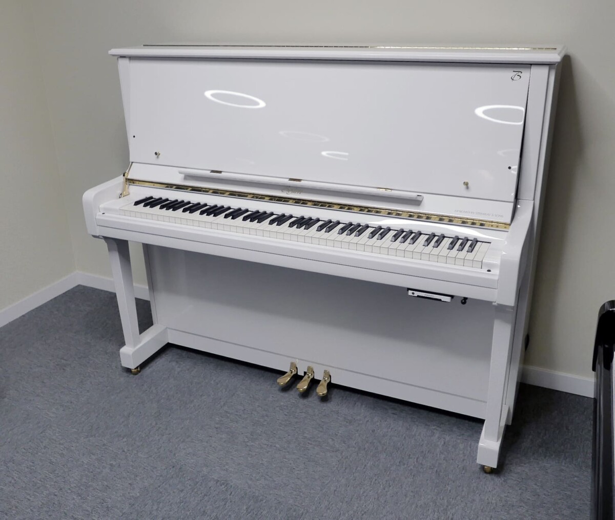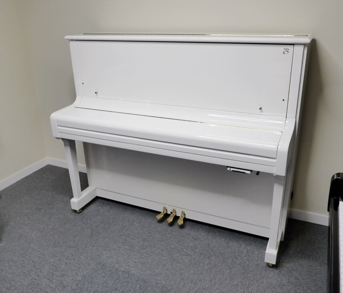 BOSTON UP-126 PE con sistema silent Genio Alpha Premium. Piano de gama profesional acabado en blanco pulido BP RAL 9003.