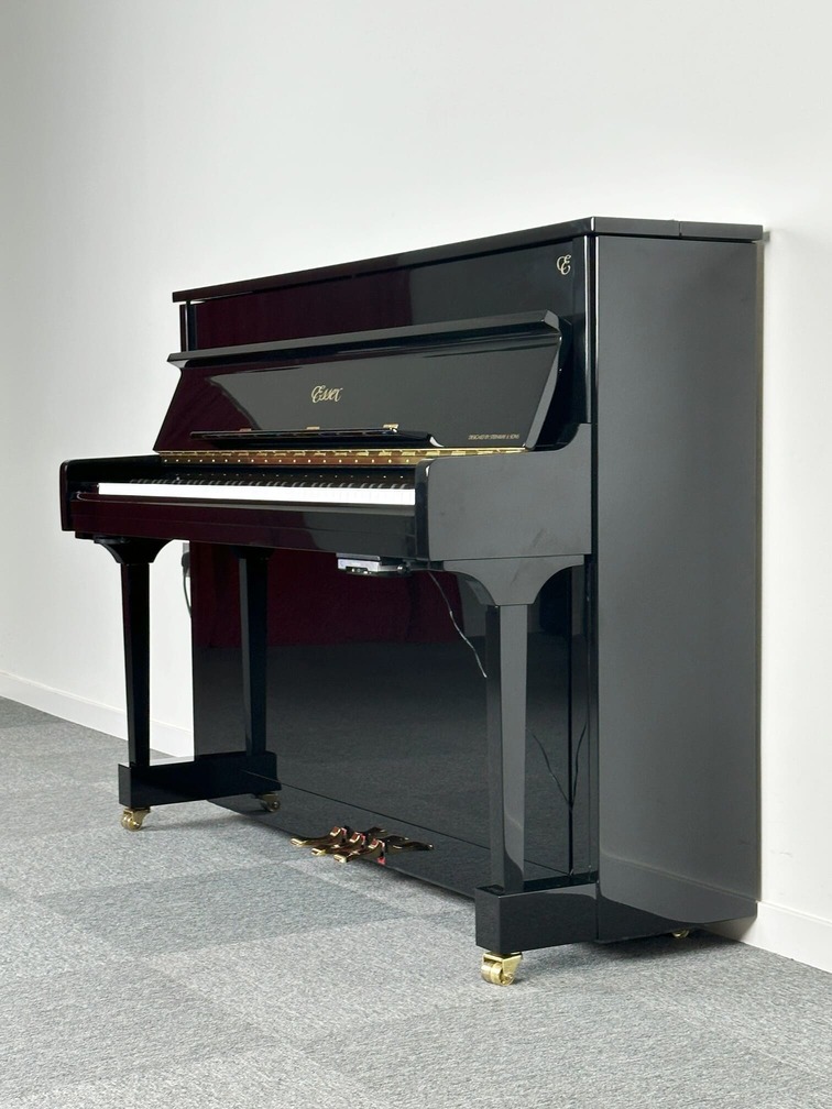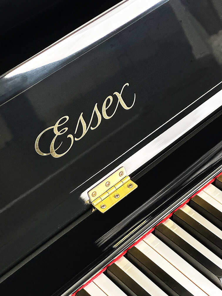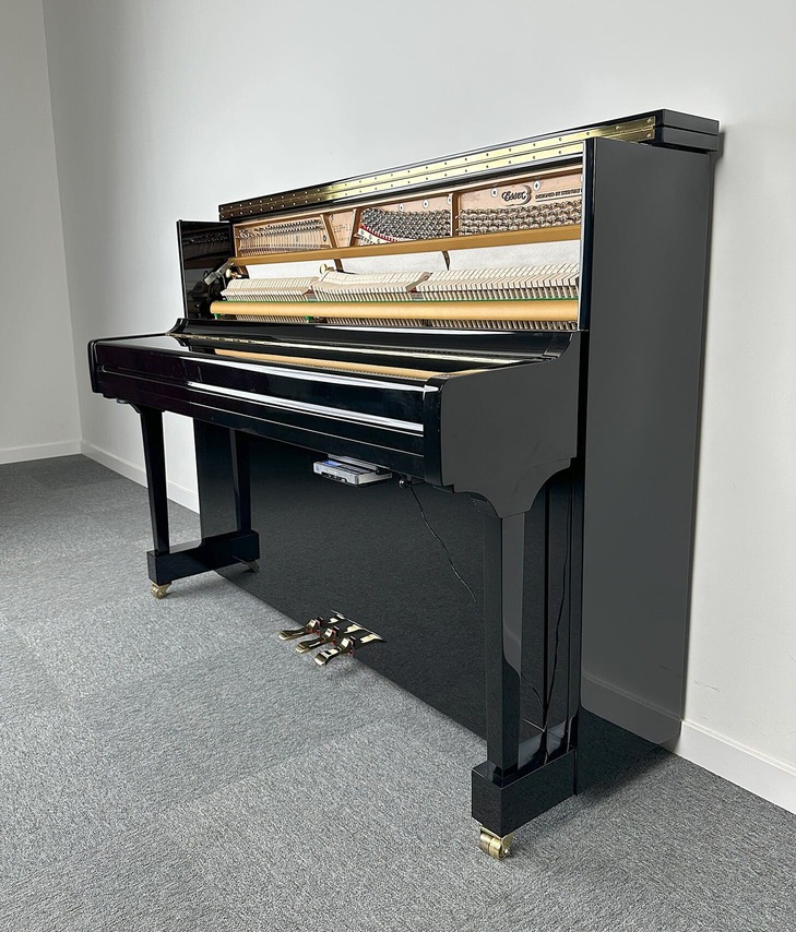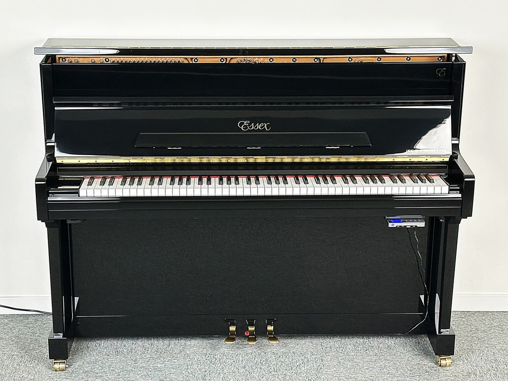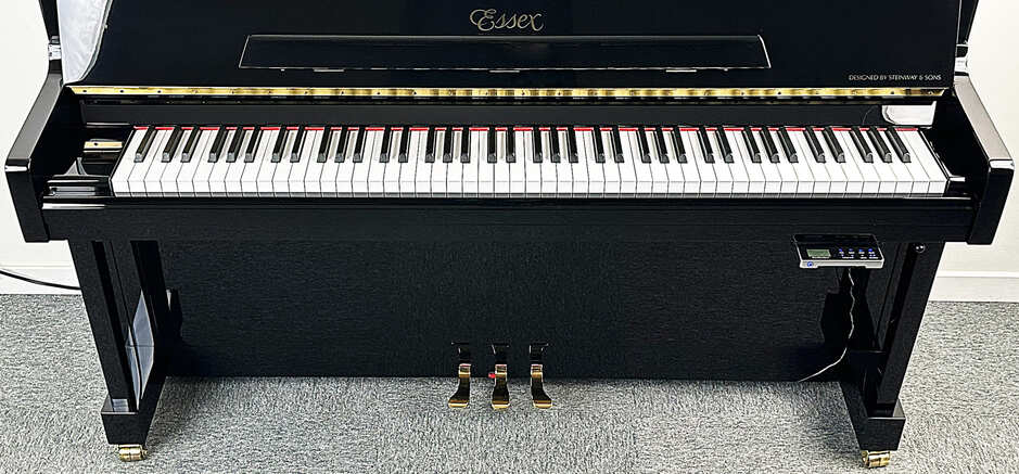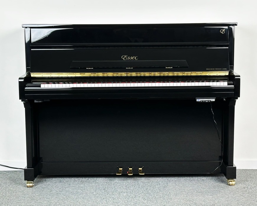 ESSEX EUP123 E con sistema silent GENIO. Piano de gama media acabado en negro pulido.