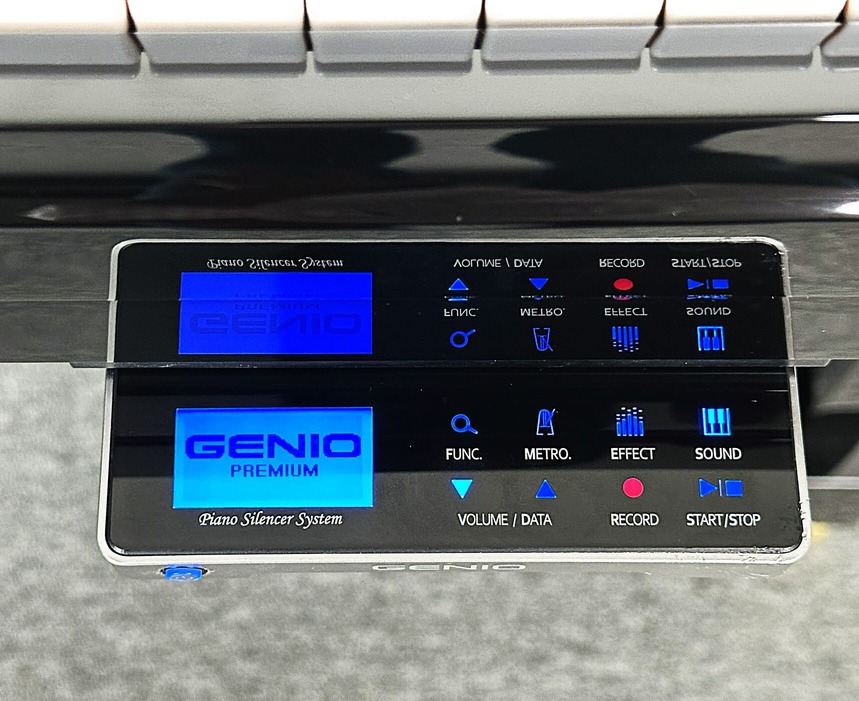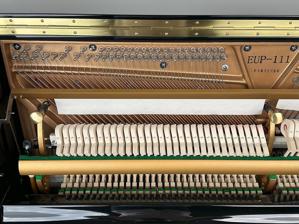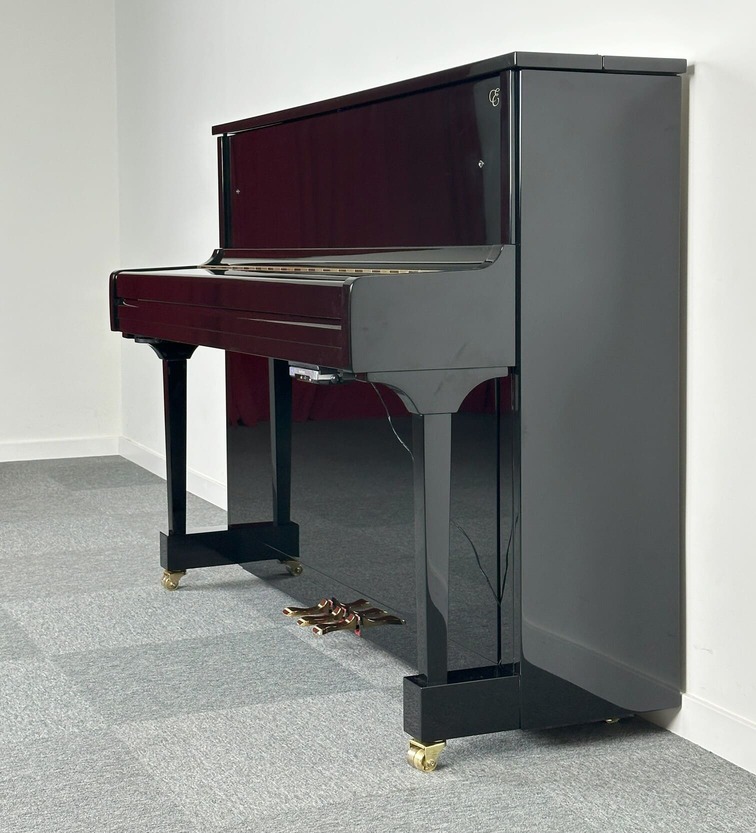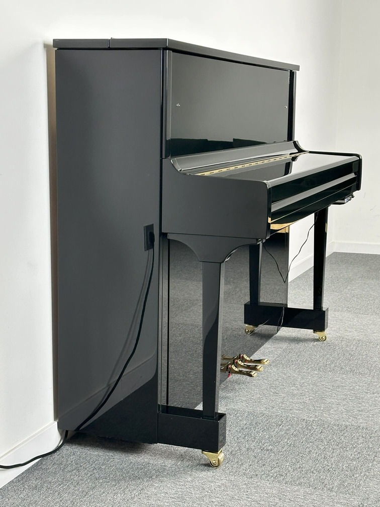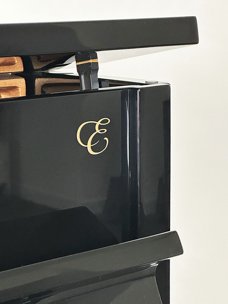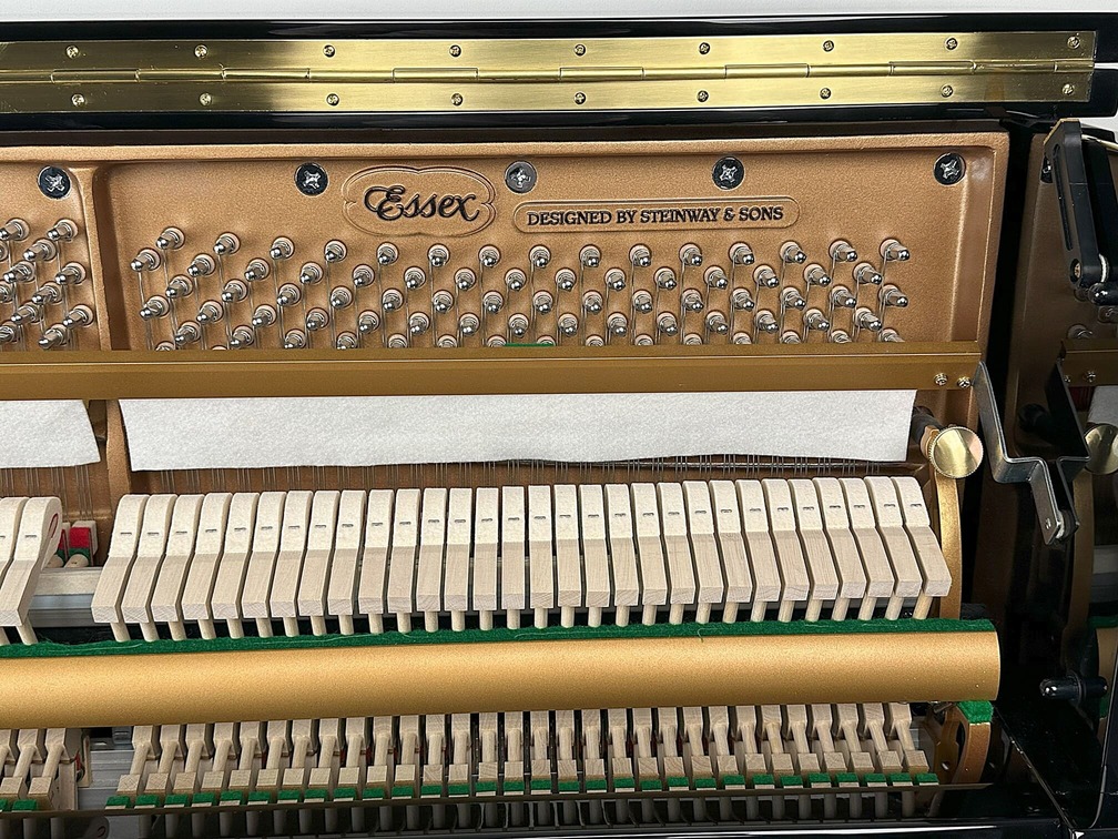 ESSEX EUP123 E con sistema silent GENIO. Piano de gama media acabado en negro pulido.