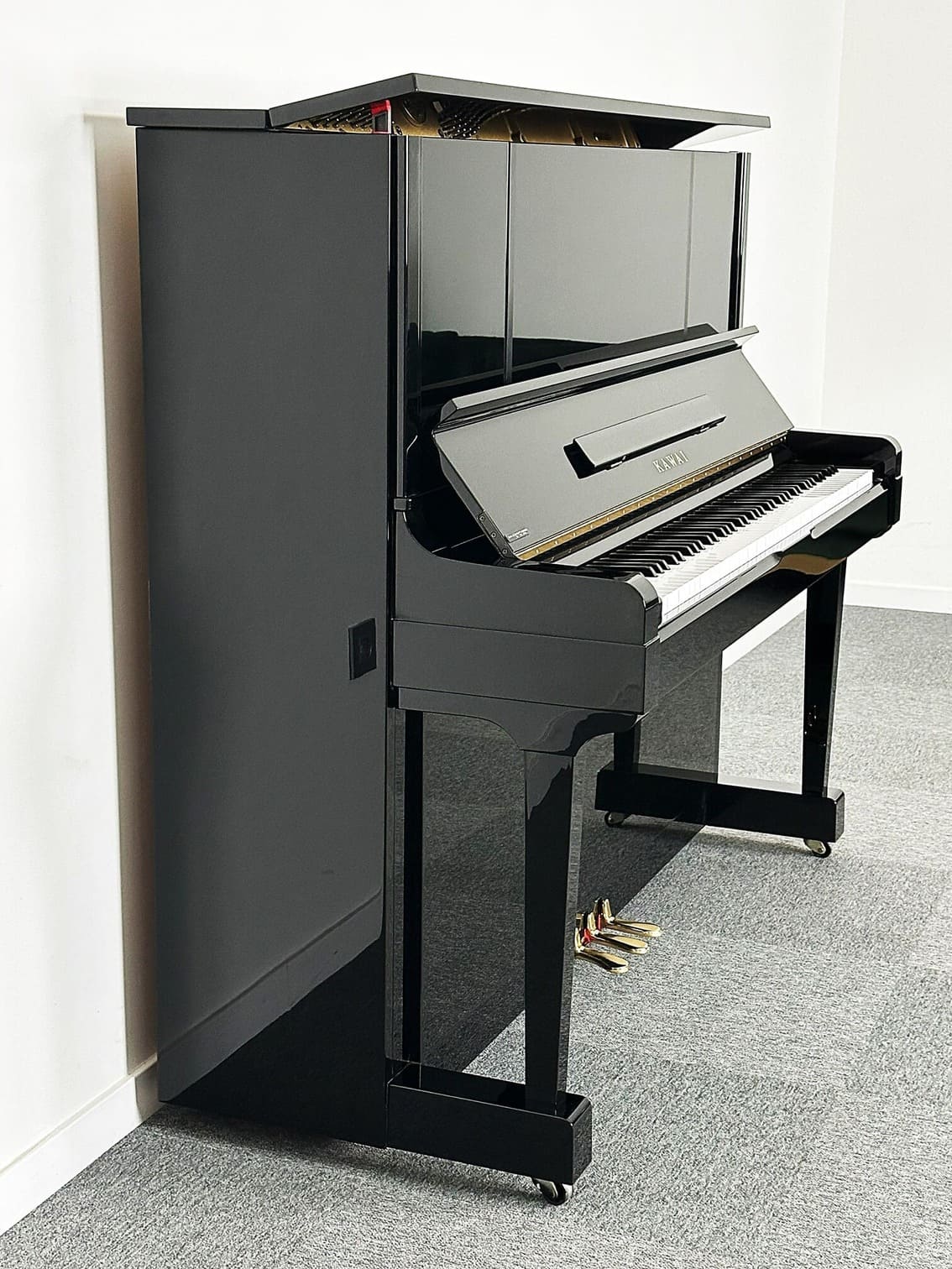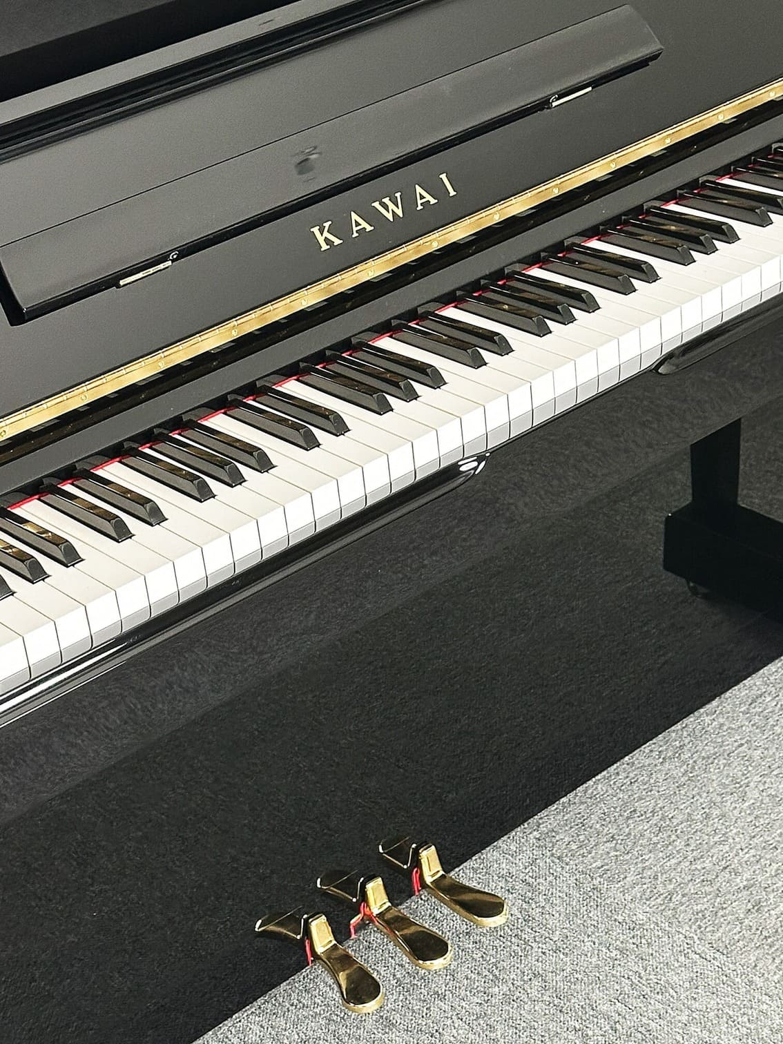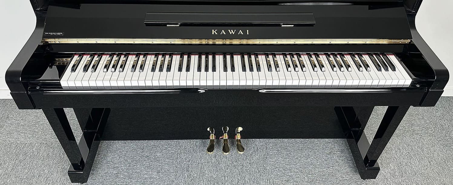 KAWAI K60. Piano de gama media acabado en negro pulido.