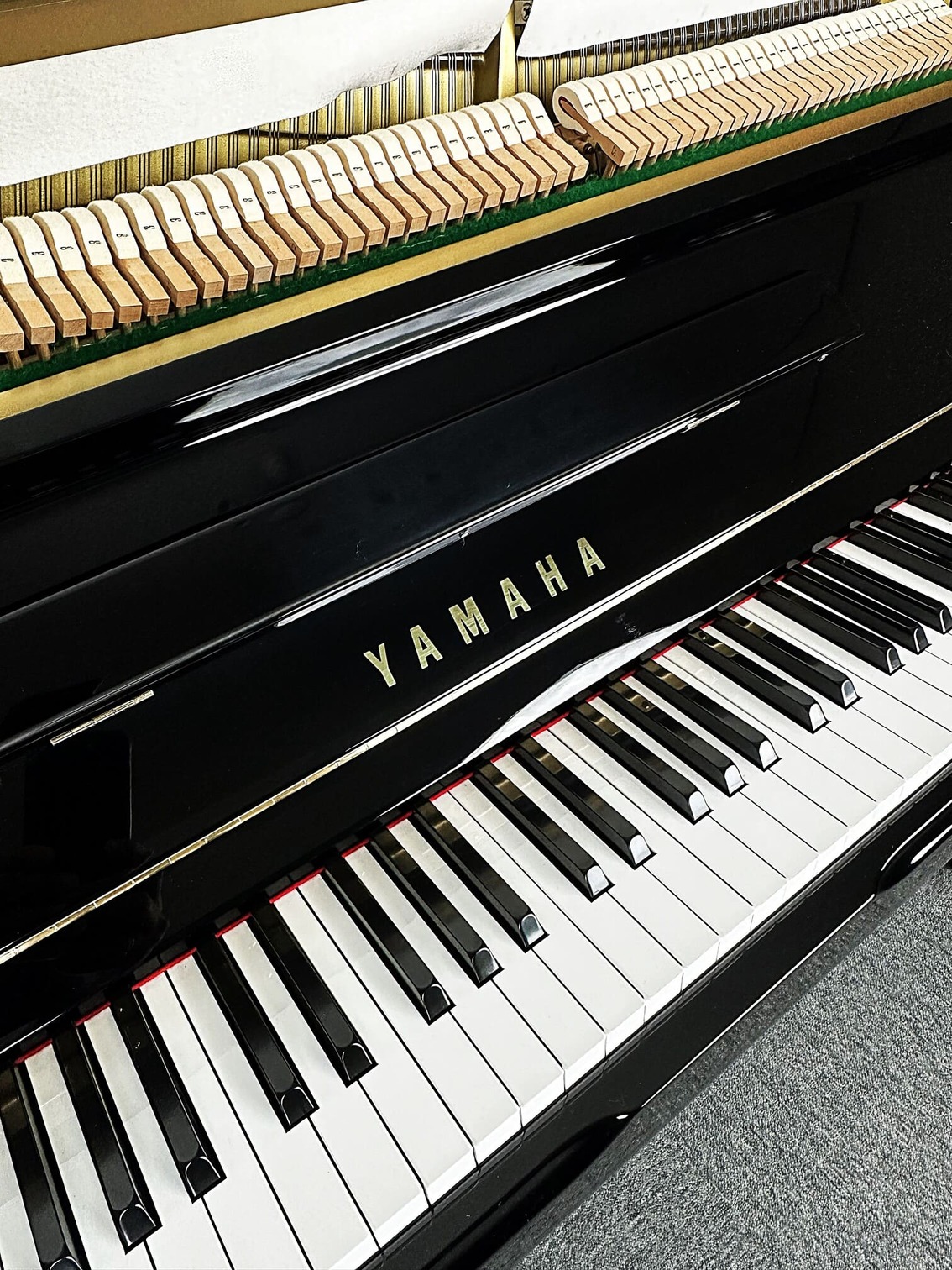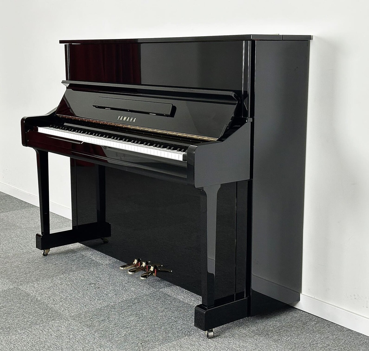 YAMAHA YU1. Piano de gama profesional acabado en negro pulido.